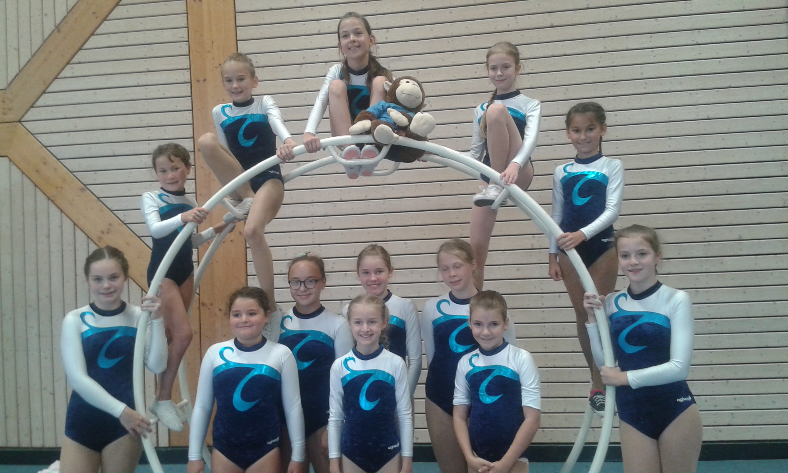Die sieben Teams bei den Bambinis machten es gleich zu Beginn extrem spannend. Unsere Mannschaft 1 (Lilly Blemel, Jana Kerstan und Romy Lurz) glänzten mit tollen Leistungen und sicherte sich sofort einen Platz auf dem 3. Treppchen. Die Drei liegen jedoch nur 0,10 Punkte hinter Platz 1. Hier ist also noch alles möglich. Auch die Mannschaft 2 (Laura Brackmann, Enisa Heilberg und Pauline Lederer) konnten hier ordentlich punkten und belegt derzeit den 5. Platz.