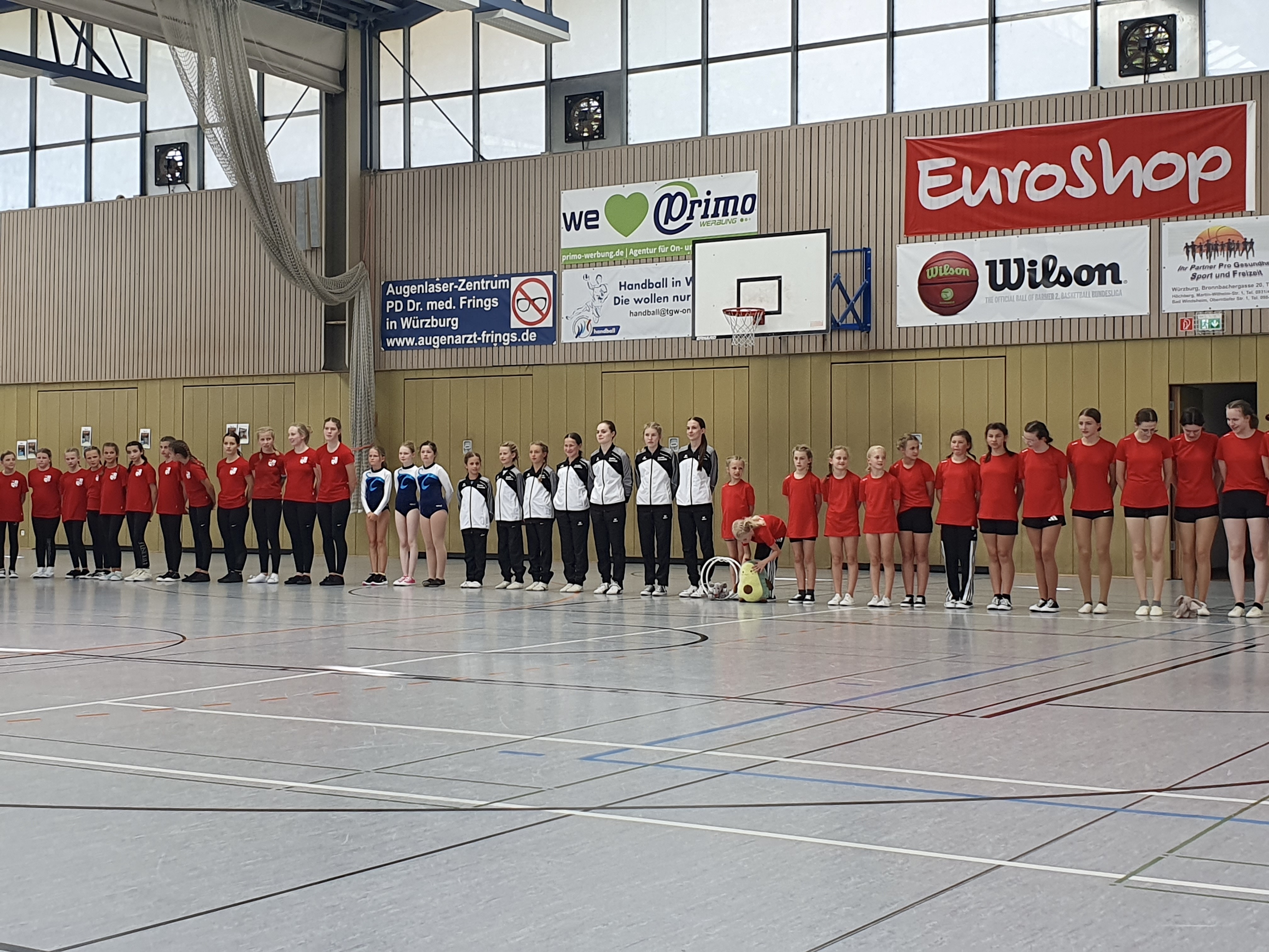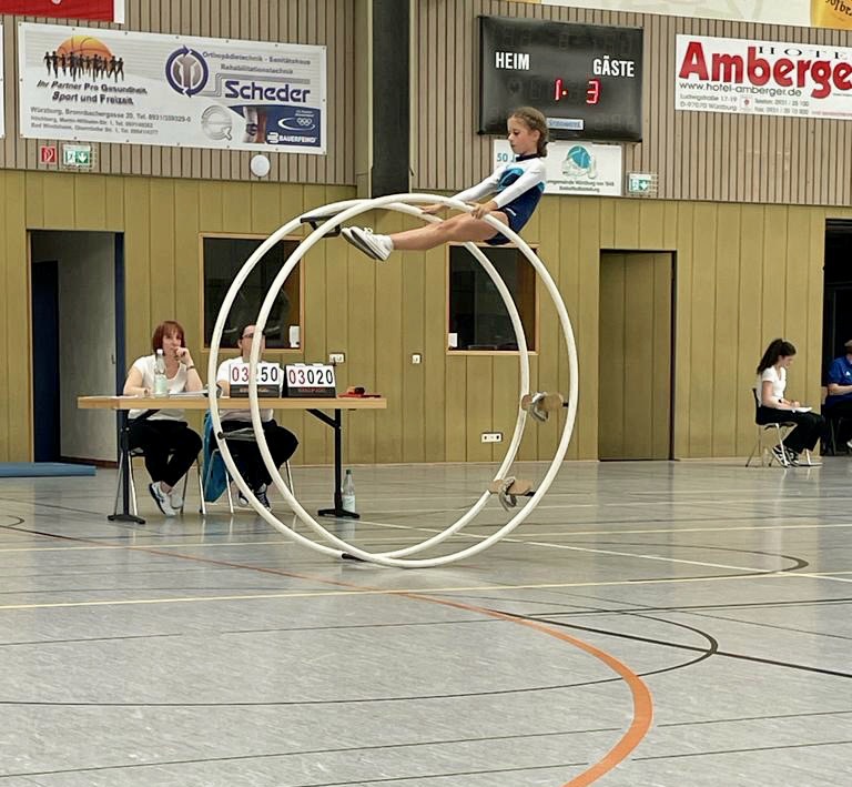 Am Wettkampftag konnten, vom ASV Rimpar, vier Mannschaften an den Start gehen. Unsere kleinsten in der Altersklasse „Mini Bambinis“, mit Lina Hinrichs, Adelina Dinu und Emma Wolf, konnten sich den zweiten Platz erturnen. Obwohl Emma leider nicht turnen konnte, da sie krank wurde, und großer Aufregung der anderen zwei, haben diese sehr schön geturnt.