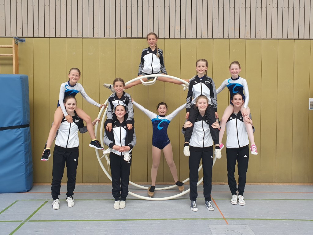 Bei unseren Ältesten in der Altersklasse „Jugend“, war die Aufregung nicht mehr so groß, da sie schon Erfahrung bei Wettkämpfen sammeln konnten. Dadurch konnten sie, EnisaHeilsberg, Mayla Löhr, Lisa Bauer und Frieda Dietz, ebenfalls mit ihren Übungsabfolgen überzeugen. Trotz ein paar Leichtsinnsfehlern erreichten sie den 5. Platz.