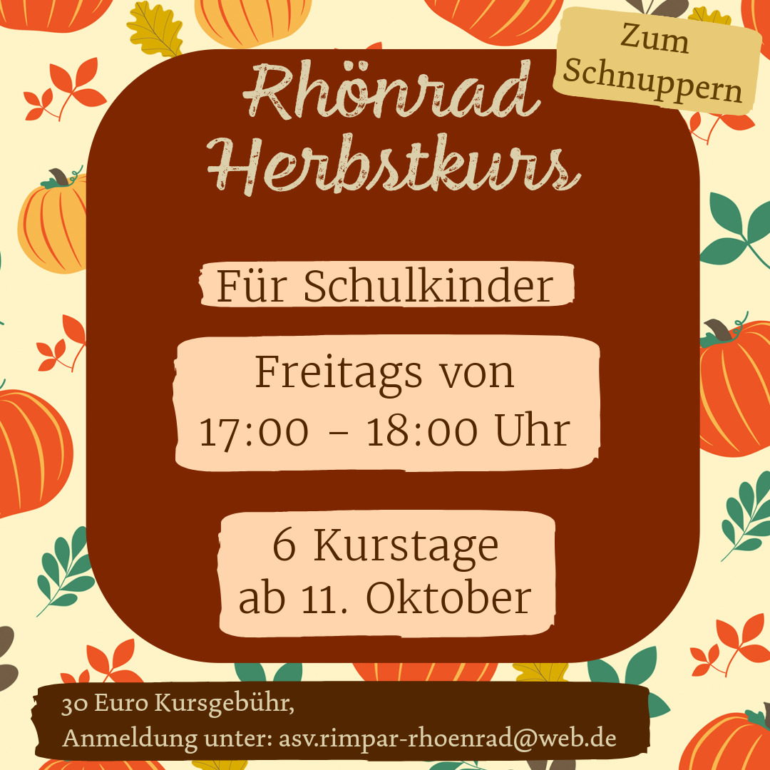 Anmeldung unter asv.rimpar-rhoenrad@web.de oder https://rhoenradasvrimpar.wordpress.com/wp-content/uploads/2024/08/kursanmeldung_schnupperkurs_beschreibbar.pdf